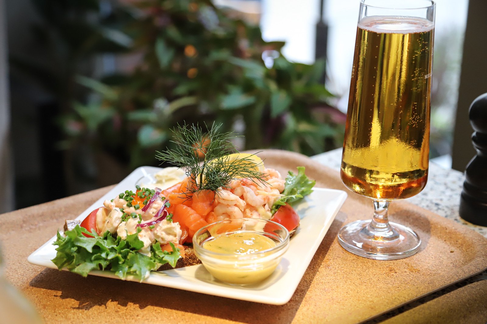 Herring is a cornerstone, pickled in countless ways: mustard, onion, dill, or spiced with Christmas flavors. It’s salty, tangy, and often served on crispbread with boiled potatoes, sour cream, and chives.
